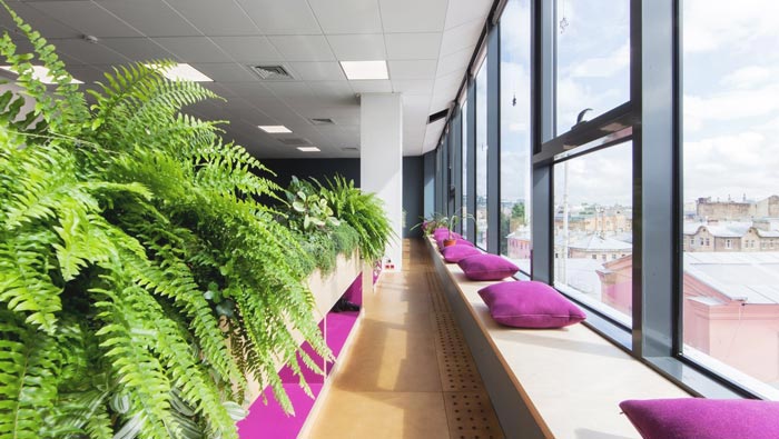 進門區(qū)域的設(shè)計:客戶進入后看到的一處生機勃勃的空間,這也這是設(shè)計師特意為之,在設(shè)計師看來不管是什么,第一印象都十分重要,故此設(shè)計師希望通過生機勃勃的進門區(qū)域,給客戶留下一個不錯的第一印象,同時生機勃勃也在一定程度上展示企業(yè)蓬勃發(fā)展的前景。