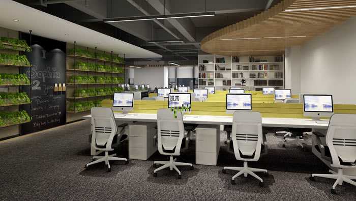 網(wǎng)絡(luò)辦公室辦公區(qū)設(shè)計(jì):設(shè)計(jì)師對空間采用7:3的比例對空間進(jìn)行劃分,在為企業(yè)打造舒適辦公空間的同時(shí),以過道起到連接空間的作用,同時(shí)綠植的點(diǎn)綴為空間帶來絲絲活力。