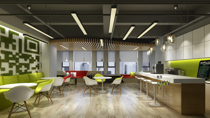 網(wǎng)絡(luò)辦公室茶水間設(shè)計(jì):空間很大一部分被用來作休息之用,設(shè)計(jì)師希望員工可以在這里遠(yuǎn)離喧鬧的工作、與快速發(fā)展的社會進(jìn)程,在此地回歸自己、找回自己,為下一步的進(jìn)步積蓄能量。