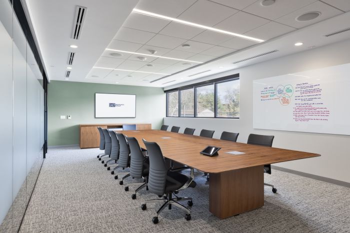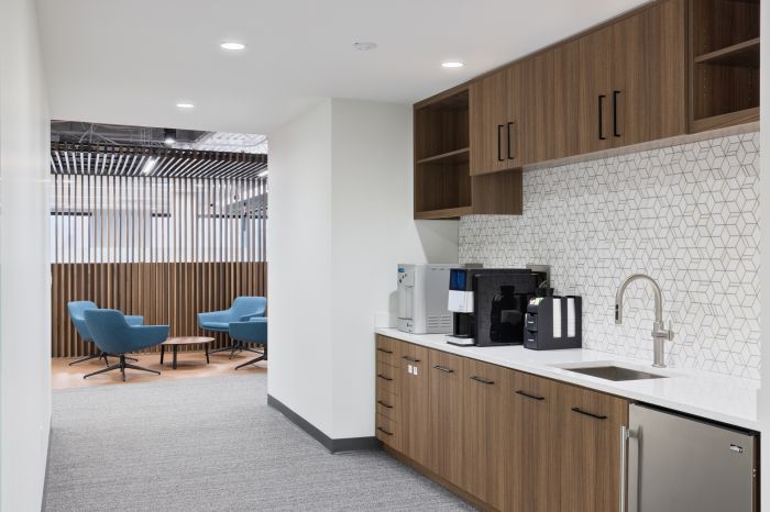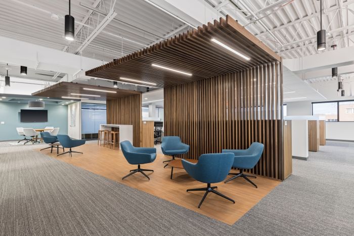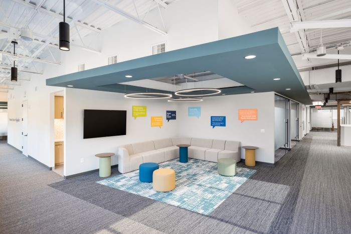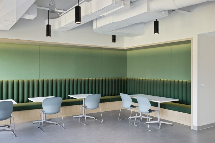 設(shè)計(jì)優(yōu)化了整體空間,以兩個(gè)開放式樓梯為中心。第二層側(cè)重于工作空間,第一層主要以公共空間為主,設(shè)計(jì)師提供了協(xié)作解決方案,其中包括一個(gè)帶有可移動(dòng)隔板的培訓(xùn)室和休息室。這個(gè)空間可以讓全國的團(tuán)隊(duì)進(jìn)行培訓(xùn)活動(dòng)。