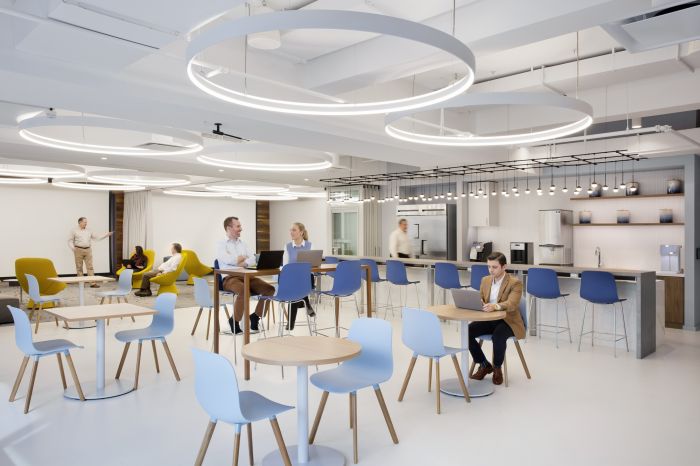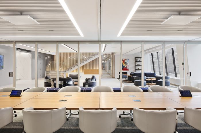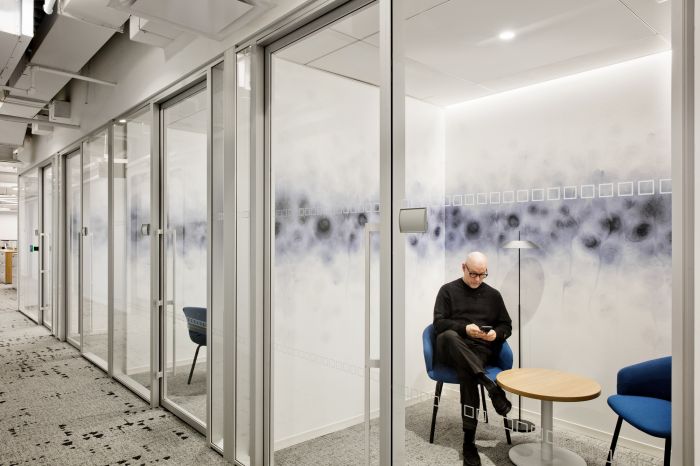 協(xié)作區(qū)域分布在辦公區(qū)和私人辦公室中,以創(chuàng)建通向多個體驗區(qū)域的路線。這包括音樂室、冥想室和休息室等空間,所有空間都是為健康而設計,旨在改善員工的工作方式。