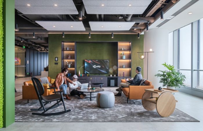這是一個外企科技公司的辦公室空間,面積為3600平,該辦公室的設(shè)計注重將本地特色與全球標(biāo)準(zhǔn)的辦公環(huán)境相結(jié)合,旨在為創(chuàng)作者、合作伙伴和客戶提供一個共同創(chuàng)新和交流的平臺。設(shè)計師運(yùn)用創(chuàng)意和真實的材料,致敬 Unity 的價值觀,即賦予所有創(chuàng)作者力量,實現(xiàn)他們的創(chuàng)意。