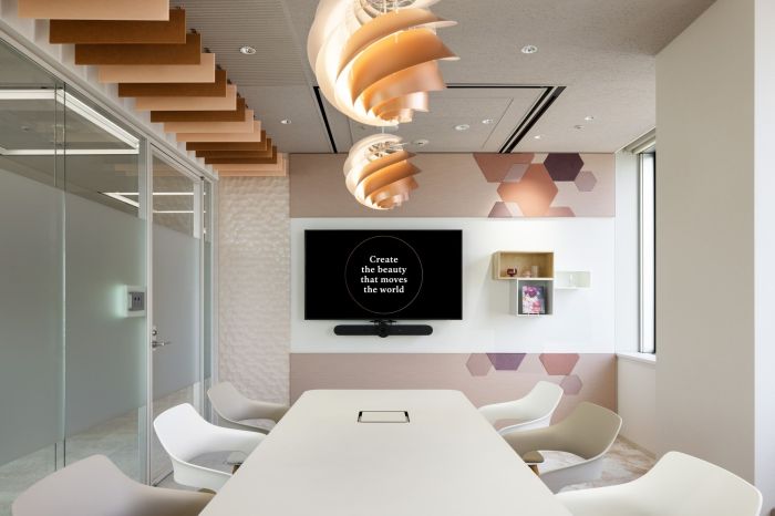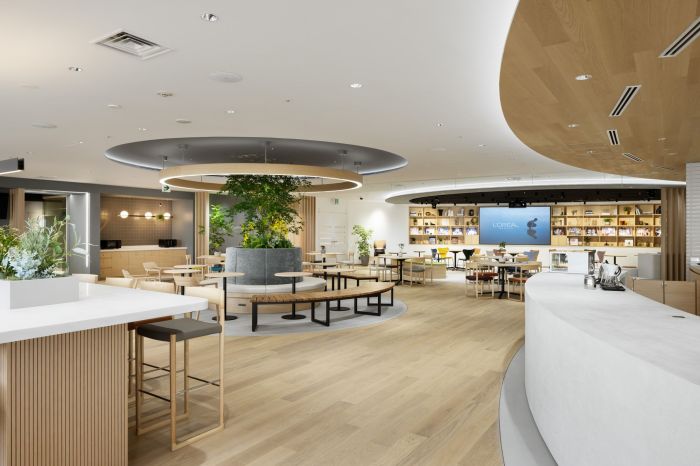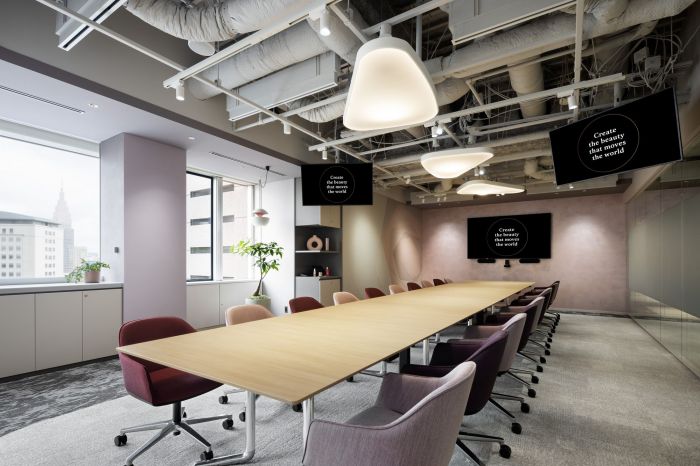 這是一個化妝品品牌的辦公室,有6300方的面積。辦公室采用了傳統(tǒng)美學(xué)的四季、紋理、家具和裝飾。辦公室采用了活動式工作模式,以支持新的工作方式,重視員工的獨立性和多樣性,并將混合辦公作為主要前提。