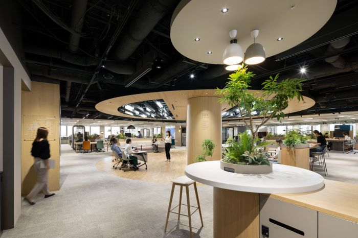 并且設(shè)立了實時直播間,以滿足數(shù)字時代的需求。為了關(guān)注員工的健康,室內(nèi)種植了綠色植物,并使用了可調(diào)節(jié)亮度的LED燈。