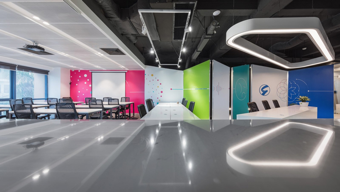 會(huì)議室的設(shè)計(jì):此處就是剛剛大會(huì)議室與小會(huì)議結(jié)合的空間,在這里可以看出設(shè)計(jì)師對(duì)于設(shè)計(jì)的靈活使用,一個(gè)小小的轱轆讓整個(gè)設(shè)計(jì)都動(dòng)了起來,設(shè)計(jì)師需要的就是這樣的效果,設(shè)計(jì)師希望讓設(shè)計(jì)活過來,讓企業(yè)對(duì)此處空間可以隨意的進(jìn)行組合,達(dá)到高效辦公的初衷,這也是設(shè)計(jì)師給大家的意外之喜。