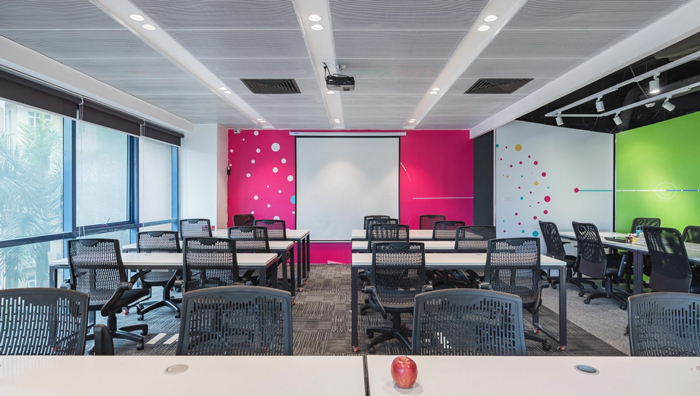 大會(huì)議室的設(shè)計(jì):本次設(shè)計(jì)設(shè)計(jì)師參考了教室的布局模式,這也是設(shè)計(jì)師不得已而為之,由于空間的面積十分有限,故此設(shè)計(jì)師只能采用比較保守的設(shè)計(jì),以此設(shè)計(jì)可以順利的進(jìn)行下去,同時(shí)設(shè)計(jì)師在原有的基礎(chǔ)上,增加了自己對(duì)于光學(xué)的認(rèn)識(shí),目的就是希望在保守之際,為空間帶來一絲生機(jī)。