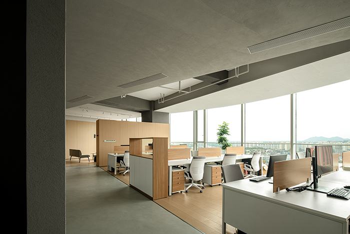 這是一個(gè)200m²的空間,場(chǎng)地是一個(gè)擁有圓弧玻璃落地窗的長(zhǎng)方形空間,靠窗的一面可以看到遠(yuǎn)處天際線的景觀。客戶期待的辦公環(huán)境是一個(gè)自然,舒適,大家庭般溫暖的空間,同時(shí)也要兼具辦公的高效與實(shí)用。
