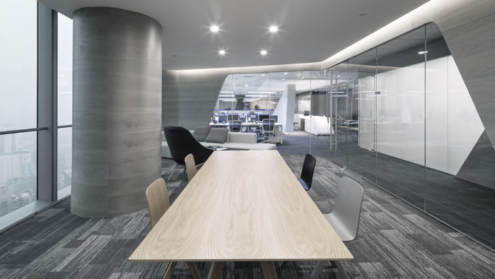 ? 會(huì)議室的設(shè)計(jì):灰色的地毯加上柔柔的燈光,讓整個(gè)空間顯得格外輕松,灰色猶如似亮非亮,燈光代表似亮非亮已經(jīng)成為過去,這表示著事情已經(jīng)解決,設(shè)計(jì)師希望通過這樣巧妙的設(shè)計(jì),為會(huì)議的開展提供一絲助力,讓人、空間、設(shè)計(jì)可以合為一體。