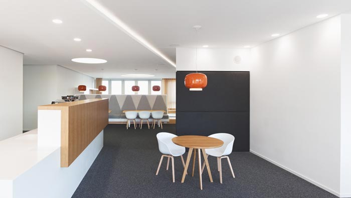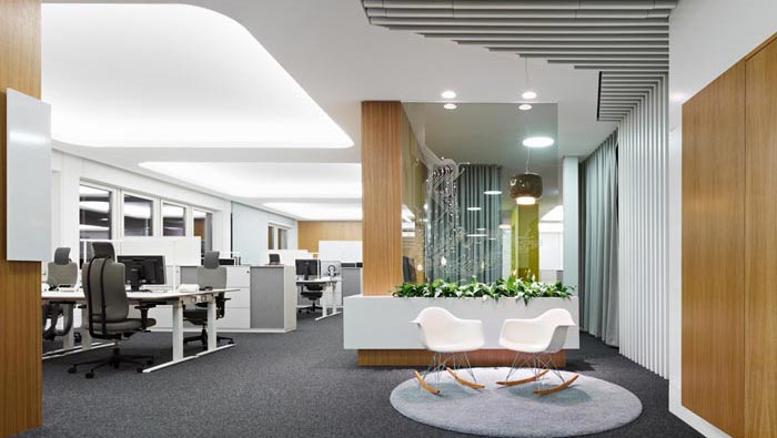 辦公區(qū)域的設(shè)計(jì):設(shè)計(jì)師在設(shè)計(jì)的時(shí)候,在采用開放式辦公的同時(shí),以儲(chǔ)存柜代替隔斷將每一個(gè)辦公工位進(jìn)行隔離,在設(shè)計(jì)師看來(lái)這樣的設(shè)計(jì)可以有效的彌補(bǔ)開放式的缺點(diǎn),同時(shí)讓空間看起來(lái)更加有層次感,儲(chǔ)藏柜的設(shè)置也很好的解決了空間容納的缺憾,真是一舉兩得。