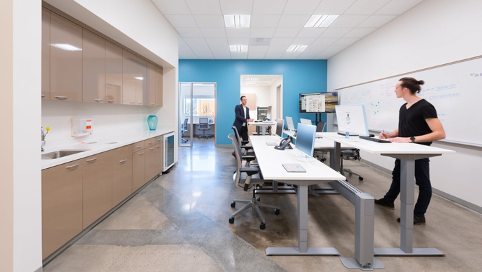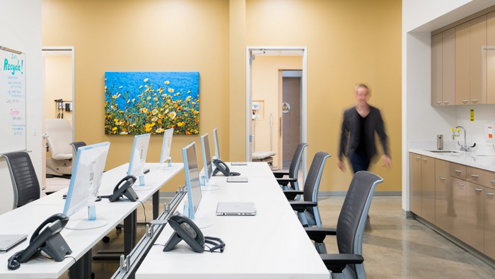 本次為醫(yī)藥辦公室裝修設計項目,設計面積在650平方左右,此處是位于加利福尼亞州山景城的新的健康設施,設計師在設計的時候,重點在于考慮如何設計出一種,符合下一代新型醫(yī)療所配套的辦公設計,這也是設計師此處設計師首要要面對的事情,旨在激發(fā)新一代努力工作,更好地生活。