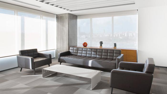 接待區(qū)域的設(shè)計(jì):此處的配置十分簡單,這也是設(shè)計(jì)師化繁為簡之后取得的成功,設(shè)計(jì)師希望當(dāng)客戶進(jìn)入空間的時(shí)候,感到的不是壓力而是喜悅,進(jìn)入空間首先看到的就是都市的美景,在陽光的照射下,是那么的迷人,讓人的心也輕松不少,俯視美景沖散了身心的勞累。