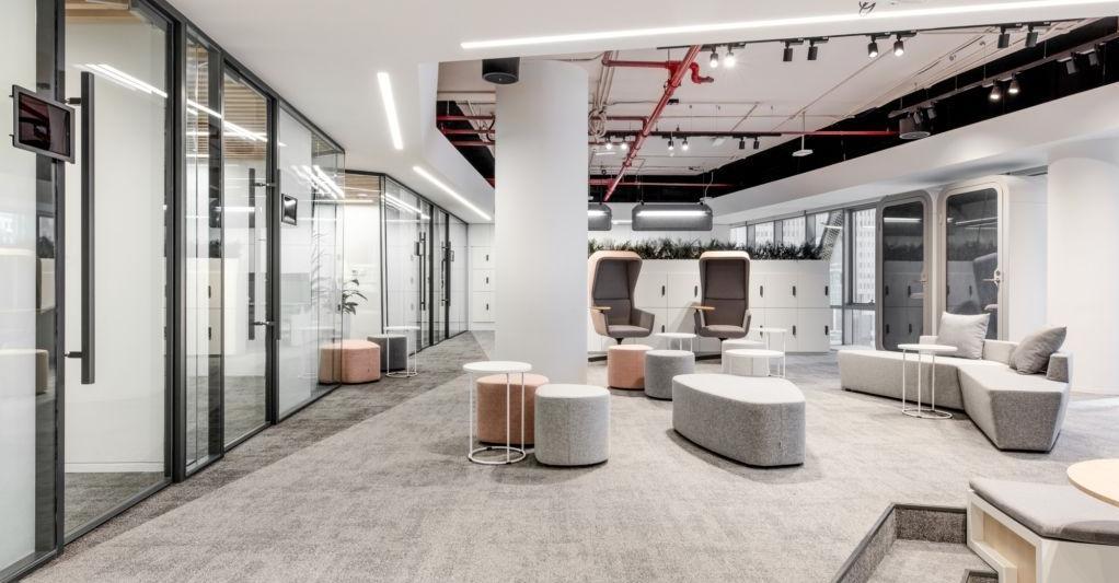獨(dú)特的坐立辦公桌;以及伸展和力量區(qū)。設(shè)計(jì)師們最大限度地利用了自然光的流動(dòng),并通過(guò)植物和綠色植物接受了生物友好型的原則。
