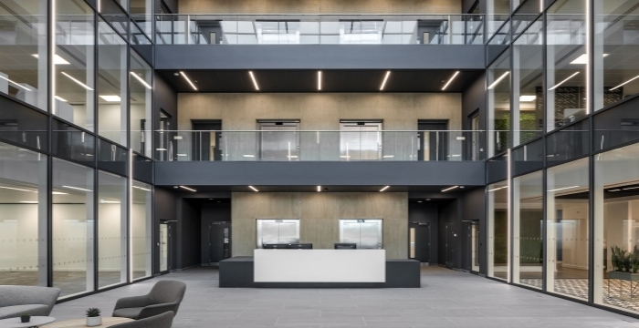 采用了主動式設(shè)計,可通往一樓的餐飲區(qū)。我們還確保認真實施所有照明和通風(fēng),以最好地滿足作為一家技術(shù)公司的特定需求,并為他們留出空間來安裝自己的自定義視聽功能。