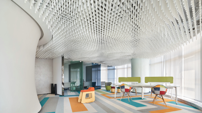 空間設(shè)計(jì)需要考慮到人與人之間的相對獨(dú)立和中間的溝通平臺設(shè)計(jì),以使之高效。同時(shí),也要設(shè)計(jì)多個(gè)員工交流的空間,讓員工們在換個(gè)環(huán)境中舒緩壓力,調(diào)整情緒,提升整體效率。