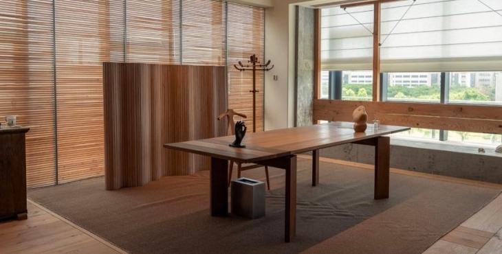 在材料上,鑲嵌在地面的來自海洋的貝類、直接從石場拉來的石方、北美松木清新的香氣,呼應(yīng)著這個塑造“自然的形狀”的服裝品牌的質(zhì)地。這些設(shè)置有利于有效率的工作和放松下來兩種狀態(tài)并存。我們希望它既能為工作提供便利性,但當(dāng)你放松下來,這個辦公室又是一個令人感到舒服的地方。