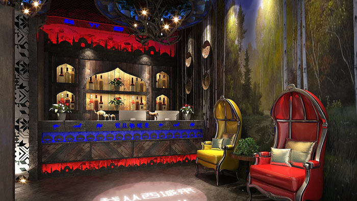 特色主題餐廳大廳設計:整個空間給人的第一感覺就是異域的風情,但這里最好的還是美食,設計師希望此處可以成為大家,了解新疆的一個窗口,讓此處成為記憶中的味道。