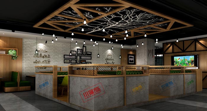本次為川漁館裝修設(shè)計方案,在川漁館設(shè)計中,“川”字被賦予了獨特的屬性,之所以這樣設(shè)計是希望可以直接了當?shù)氐?,傳遞出品牌的鮮明特征,在川漁館室內(nèi)設(shè)計中,設(shè)計師以大氣、簡約、現(xiàn)代為設(shè)計主題,目的就是希望為客戶營造一個優(yōu)質(zhì)的川菜就餐環(huán)境。