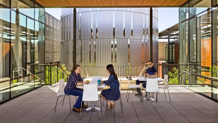 廠區(qū)的設(shè)計(jì):此處的風(fēng)景是一位室外設(shè)計(jì)師所設(shè)計(jì)的,在設(shè)計(jì)中兩位設(shè)計(jì)師做了全面的溝通,這樣做的目的就是希望室內(nèi)、室外可以融為一體,室外設(shè)計(jì)師也受到業(yè)主的感染,在設(shè)計(jì)中加入了各種節(jié)能設(shè)計(jì),讓整個(gè)空間宛如一體。
