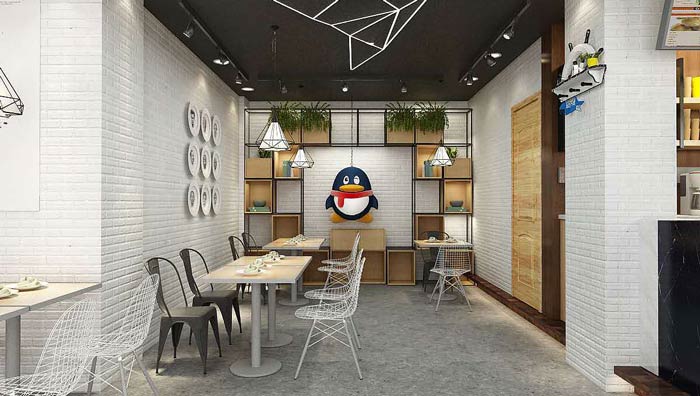 茶飲茶餐廳裝飾設(shè)計(jì):QQ相信是大部分年輕人一個(gè)共同的回憶,大家在上面交友、聊天,拉近了彼此之間的距離,這里也同樣如何,這里拉近了年輕人與自己的關(guān)系。