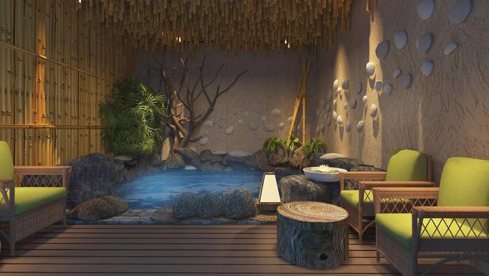 溫泉的設(shè)計(jì):此處描繪的是一戶人家的生活,在此處我們仿佛回到了古代,在這里沒有紛爭(zhēng)、沒有壓力、沒有污染,有的只是與世隔絕的安寧,這樣的安寧在現(xiàn)在的都市中是絕對(duì)感覺不到的,在這里顧客可以做到真正的放松身心,讓自己在這里的氛圍中,去治愈我們那千瘡百孔的內(nèi)心。