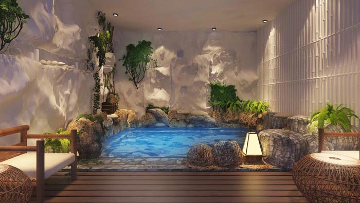 崖底溫泉的設(shè)計(jì):此處描繪的是一個(gè)山崖底部的溫泉,在這里開啟了我們的少年夢(mèng)想,相信每一個(gè)人都有在崖底奇遇的夢(mèng)想,在這里我們可以變泡溫泉邊想象,在這樣的空間中,我們的疲憊被夢(mèng)想所替代,這也是設(shè)計(jì)師的一個(gè)情結(jié),就是希望每一個(gè)人都可以在這里尋回少年的夢(mèng)想,當(dāng)然奇遇就是某種獎(jiǎng)勵(lì)。