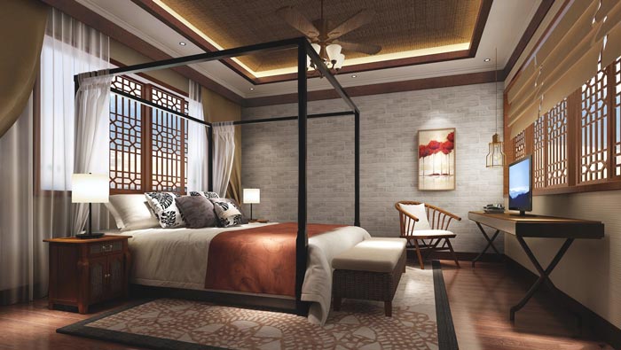 D類客房的設(shè)計(jì):此處是為文雅之士準(zhǔn)備的,當(dāng)然夫妻、戀人都可以在此處,在設(shè)計(jì)師看來每一個人出來旅游,都不僅僅只是看風(fēng)景,而是尋找心中的寧靜,故此設(shè)計(jì)師縱覽中華文化的歷史,感受到古人對于心的修煉值得我們現(xiàn)代人借鑒,此處的格局設(shè)計(jì)頗具古時之風(fēng)。