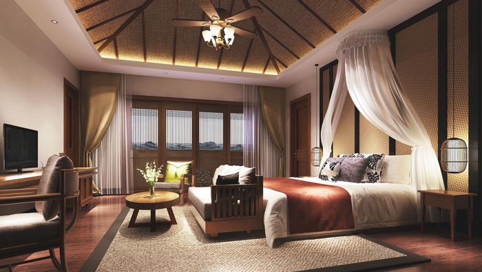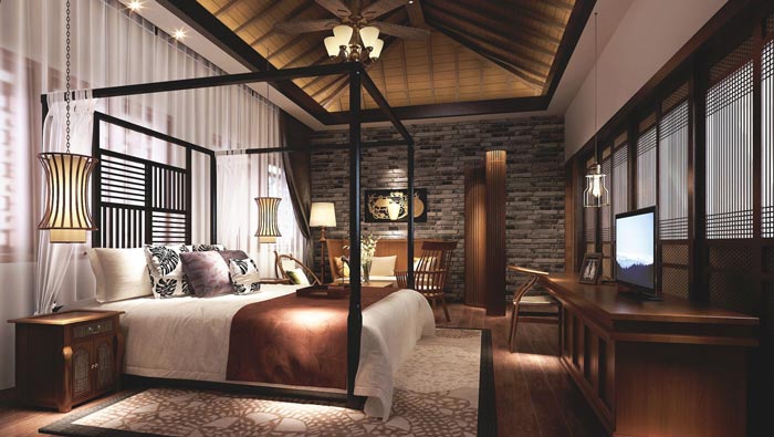 A類客房的設(shè)計(jì):對于辛苦一天的游客來說,軟軟的床、溫馨的空間正是他們需要的,在此處客戶可以稍作休息與調(diào)整,之后客戶打開木窗可以直接眺望到遠(yuǎn)方的群山,讓人可以足不出戶就可以欣賞到美景,這正是設(shè)計(jì)師給客戶準(zhǔn)備的禮物。