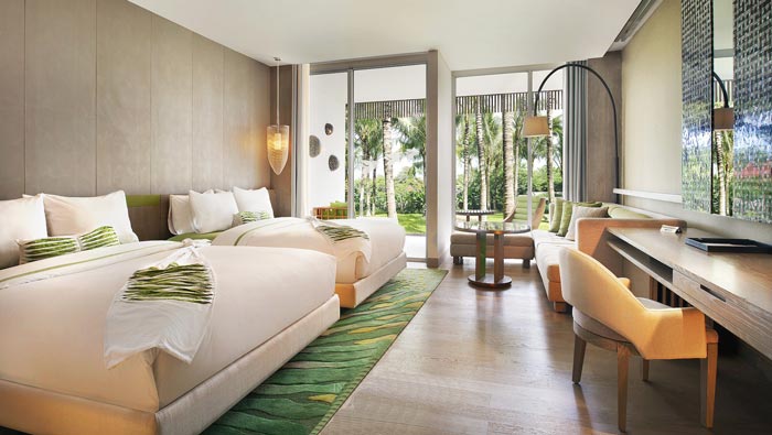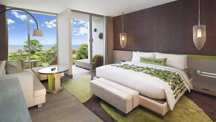客房的設(shè)計(jì):在這里我們感受到的是度假村美麗的景色,在這里我們離自然是那么的近,設(shè)計(jì)師在設(shè)計(jì)中也充分考慮到室外景色的引入,在設(shè)計(jì)師看來客房與戶外景色相互融合,所達(dá)到的效果絕不是簡(jiǎn)單的1+1,而是將酒店進(jìn)行了一次全新的深化,讓酒店進(jìn)行一個(gè)全新的升級(jí)。