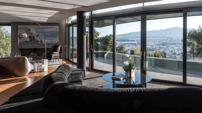 此豪華別墅在戶型上采用藝術(shù)感較強(qiáng)的彎曲造型,向陽(yáng)而生,即便安坐家中也能欣賞到超過(guò)一百八十度的美麗風(fēng)景。