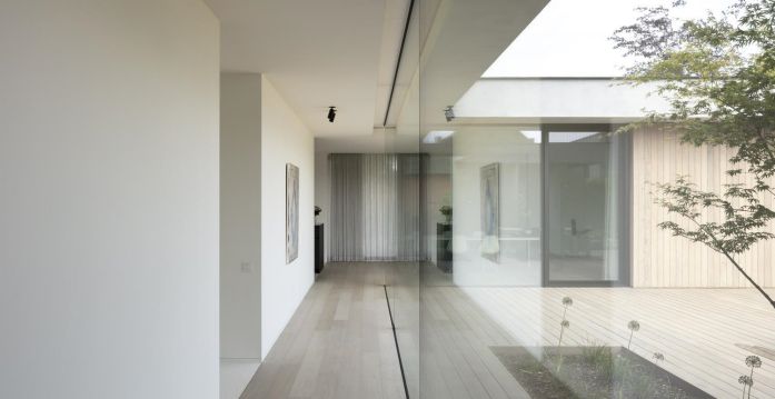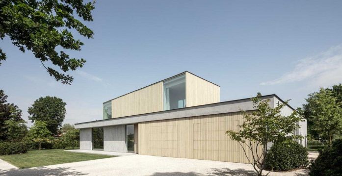 底層的支撐底座是由一種混凝土外觀的平灰泥突出的。在上面的較小體積是在木箱和包層上實(shí)現(xiàn)的。然而,這兩卷在物化上的差異似乎不難對(duì)比。畢竟,灰泥是以淺灰色進(jìn)行的,它的底土和一種特殊的清掃技術(shù)也使灰泥具有溫暖的色調(diào)。這樣做,某些等級(jí)出現(xiàn),使整體看起來不那么平坦,更自然。這與大窗戶結(jié)合在一起,產(chǎn)生了美麗的和諧。