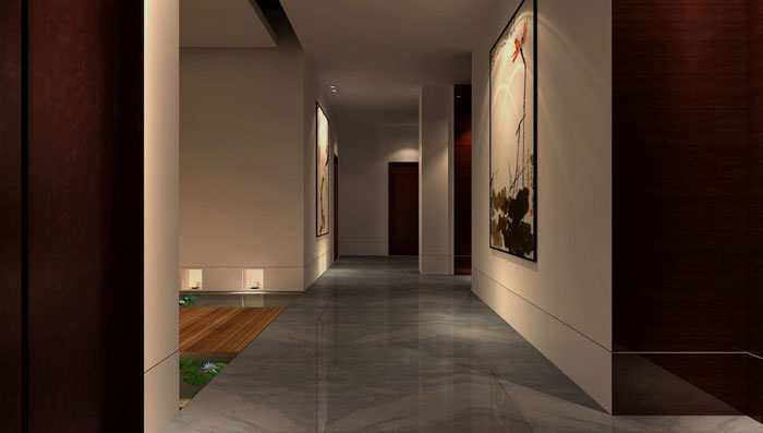 過道的設計,設計師采用極簡的方式進行設計,在看似簡單的背后,隱藏著設計師智慧的火花。