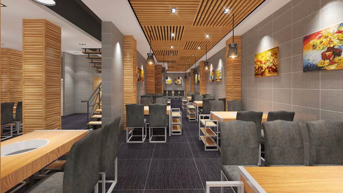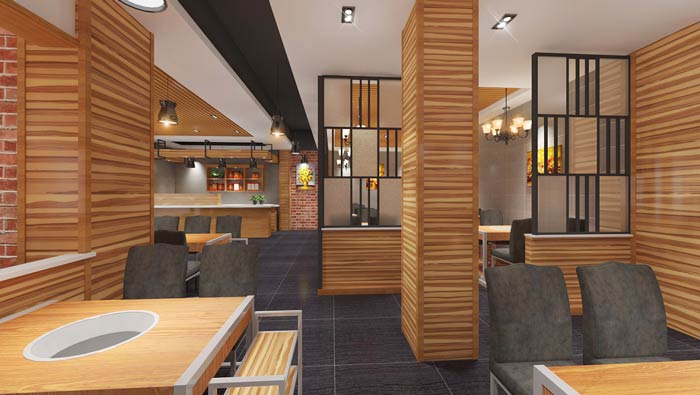 魚火鍋店一樓餐區(qū)設(shè)計:四人桌、六人桌是一樓餐區(qū)的主要組成部分,這里的設(shè)計目標(biāo)十分明確,就是為每一桌的客戶,在滿足需求的同時,為他們營造一個優(yōu)質(zhì)的就餐環(huán)境。
