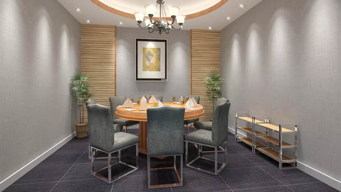 魚火鍋店六人包廂設(shè)計:此包廂可以容納6人,這里是家庭聚餐的首要選擇,也是朋友聚餐的首要選擇,這里安靜、舒適、簡單,讓一家人在這里享受團(tuán)聚的喜悅。