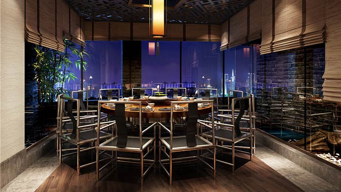 肥?;疱伒曛邪鼛O(shè)計(jì):空間可以容納10個(gè)人,室外景色被很好的引入室內(nèi),就餐人員可以邊吃飯、邊欣賞美景,一舉兩得,讓客戶喜歡這里、愛上這里。