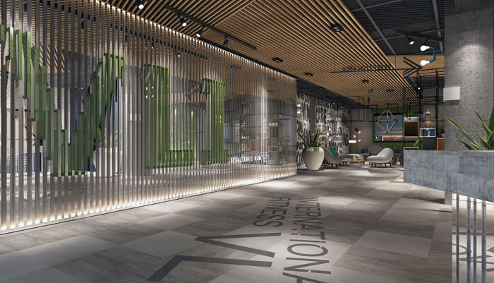 在室內(nèi)空間中,主色大面積采用大地色(大地灰),不但最具親和力,也能夠讓體能訓(xùn)練者在運動中逐漸找到運動的節(jié)奏,同時可以讓瑜伽類安靜的運動得到一種精神的放松。