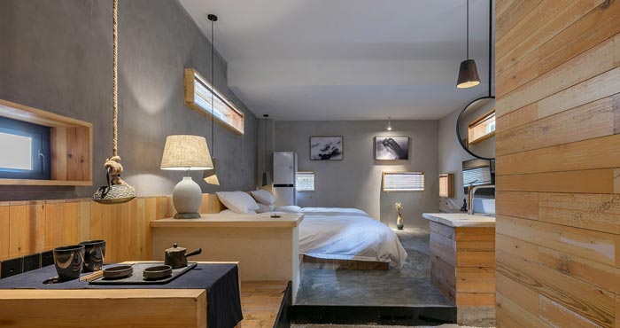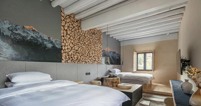 本案簡約民宿設計項目介紹結束,民宿設計加入了東方的禪意元素,然后以古城香格里拉的藏式風格自然過渡,呈現(xiàn)在客戶眼前的是,散發(fā)著自然之美的簡約民宿。