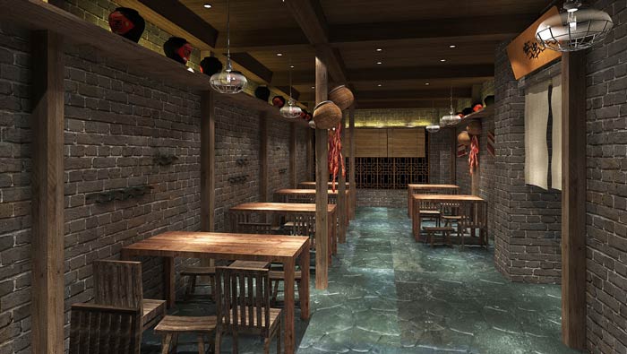 特色燒烤店餐區(qū)設(shè)計(jì):餐桌的擺放按照一定的比例進(jìn)行排列,在排列的過程中,設(shè)計(jì)師也預(yù)留了足夠的活動(dòng)空間,活動(dòng)空間做為空間的過道,內(nèi)部裝飾多以懷舊為主。