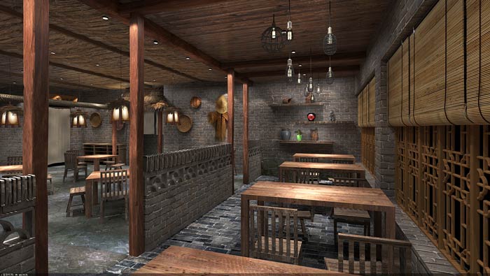 特色燒烤店餐區(qū)設(shè)計(jì):這里給人的第一感覺就是安逸,這里所說的安逸是心靈的安逸,在這里沒有了時(shí)間的概念,設(shè)計(jì)師希望讓客戶在這里體驗(yàn)日出而作、日落而息的美好生活。