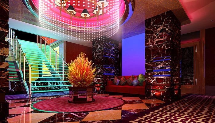 強(qiáng)調(diào)視覺中心等燈光具有裝飾KTV建筑室內(nèi)空間的作用,創(chuàng)造環(huán)境空間的形與色,使之融為一體,借助各種光效應(yīng)而產(chǎn)生美的韻律!