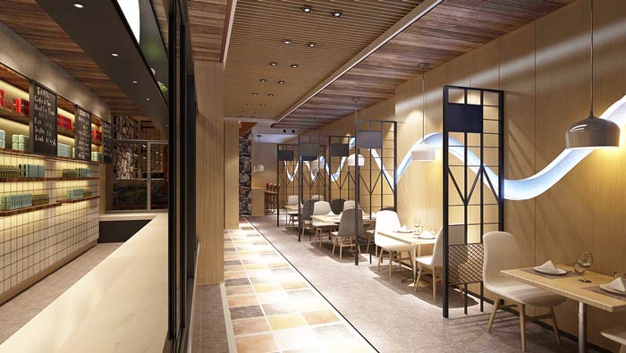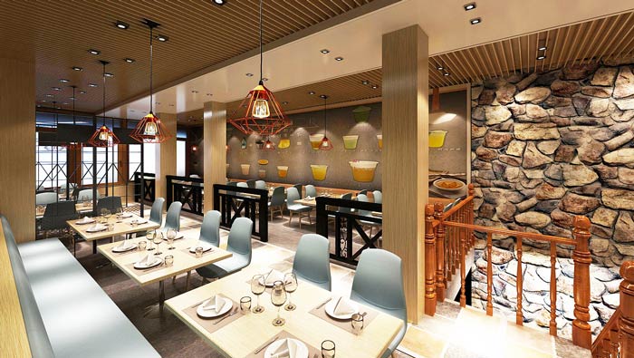 中式快餐店二樓裝飾設(shè)計:二樓給人的第一感覺就是井然有序,在這樣的空間中就餐,對于客戶來說也是一種享受,設(shè)計師希望在細(xì)節(jié)上,打造屬于快餐廳自身的特色。