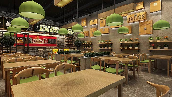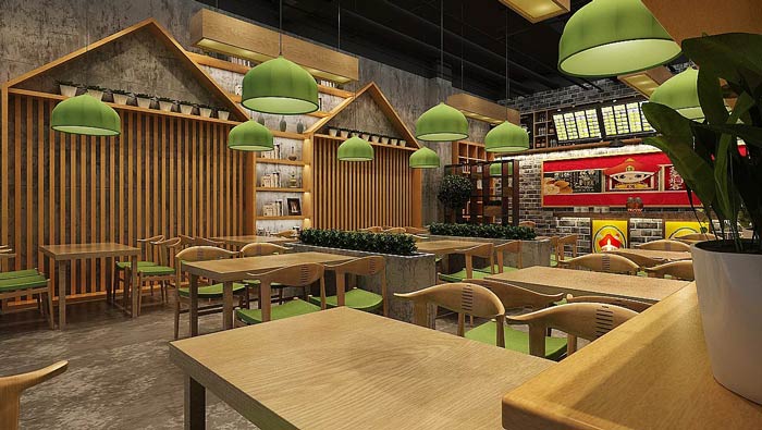 中式快餐店餐桌設(shè)計:當客戶在等待的時候,可以看看書、玩玩手機,都是一個不錯的選擇,這樣的快餐廳氛圍,會讓客戶喜歡這里、愛上這里,以此增加快餐廳的回頭客。