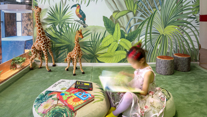 教育培訓(xùn)閱讀區(qū)設(shè)計(jì):在此處設(shè)計(jì)的時(shí)候,設(shè)計(jì)師的想法就是希望閱讀可以和玩耍結(jié)合在一起,設(shè)計(jì)師以四方格做為基本框架,以階梯狀打造閱讀區(qū),中間自然凹陷是孩子玩耍的區(qū)域,勞逸結(jié)合正是此處的最佳說(shuō)明。