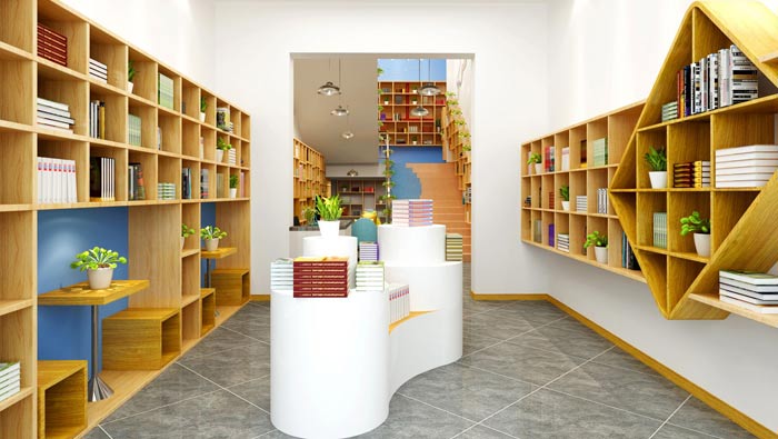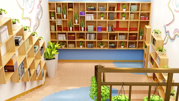 舞蹈培訓(xùn)機(jī)構(gòu)一樓前廳設(shè)計(jì):一樓前廳主要是圖書銷售、購買與閱讀,在這里有著各式各樣的書籍,孩子們可以在這里閱讀,柜子的設(shè)計(jì),打破傳統(tǒng)的中規(guī)中矩,柜子中藏著休息區(qū)域,讓空間更有體驗(yàn)感。