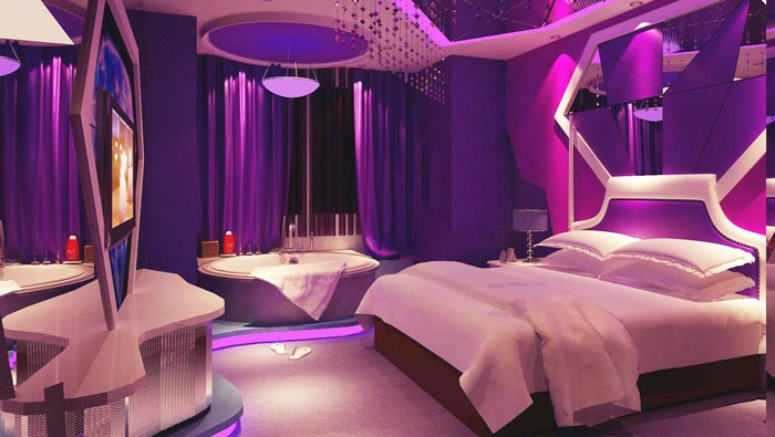 紅色誘惑客房的設計:在空間之中嫵媚的紅色讓人迷戀、讓人溫暖、讓人歡愉,這樣的設計既能增加情趣,又可以建立愛人之間貼心和浪漫的氛圍,設計師希望給愛人特別的一天,讓愛人在紅色誘惑的客房之中感受到妖嬈與誘惑,在其中有幾分性感、有幾分成熟,讓人欲罷不能。