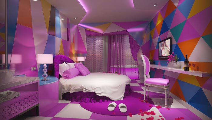 本次為浪漫情侶酒店裝修設(shè)計(jì)項(xiàng)目,設(shè)計(jì)師在眾多情侶酒店的設(shè)計(jì)中,也越來越感覺到客房多樣性的重要,故此在本次設(shè)計(jì)中,設(shè)計(jì)師對(duì)情侶酒店做了一次調(diào)研,其中著重的就是客房風(fēng)格的選擇,最后設(shè)計(jì)師以空間格局、城市屬性、文化差異為參考,定出最適合的情侶酒店客房模式。