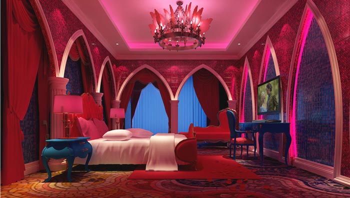 本次為愛(ài)情酒店裝修設(shè)計(jì)項(xiàng)目,業(yè)主是一位朝氣蓬勃、非常有想法的資深創(chuàng)業(yè)者,此次設(shè)計(jì)共規(guī)劃了22種房型,一種房型一種風(fēng)格:從青蔥歲月到濃情蜜意、從紅塵絕戀到地老天荒,每種房型都是一段美麗的愛(ài)情故事,為相愛(ài)的人搭建出難以忘懷的愛(ài)情場(chǎng)景。