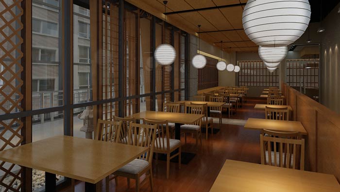 日本料理餐廳過道餐區(qū)設(shè)計(jì):這里是室內(nèi)與室外的交匯處,客戶在這里就餐可以享受到自然風(fēng)、享受到自然的陽(yáng)光,在這里與自然是那么的近,在這里讓客戶感受到一種安寧。