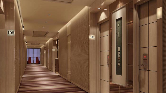 走廊的設(shè)計(jì):我們?cè)诖颂幍谝谎劭吹降木褪欠块g標(biāo)志,這也是設(shè)計(jì)師特意為之,因?yàn)樵谠O(shè)計(jì)師看來(lái),酒店的優(yōu)點(diǎn)是大而全,但是缺點(diǎn)就是房間過(guò)多,會(huì)讓顧客感受無(wú)所適從,在尋找房間的過(guò)程中會(huì)遇到很大的阻力,這也是現(xiàn)在酒店設(shè)計(jì)中都會(huì)注意的一點(diǎn),此處設(shè)計(jì)師采用柔光與空間的對(duì)比,讓顧客可以輕松的知道自己在那里,讓客戶不會(huì)迷失。