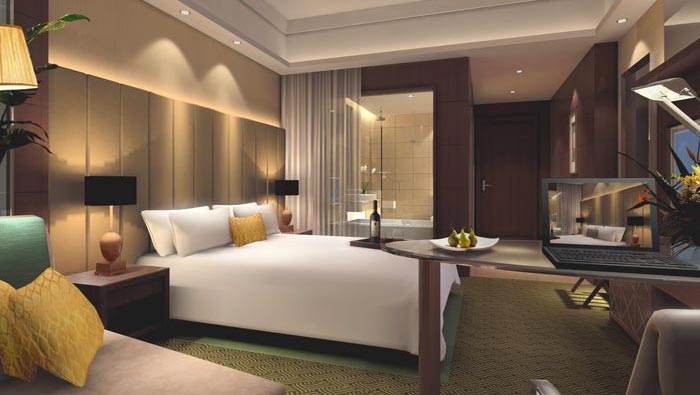 商務(wù)大床房的設(shè)計(jì):此處屬于酒店的標(biāo)準(zhǔn)間,在這里顧客可以辦公與休息,但是此處的辦公環(huán)境不同,讓顧客在愉悅的氛圍中辦公,并支持辦公的各種輸出,以此解決客戶的后顧之憂,當(dāng)顧客品著一杯紅酒休息和辦公,相信這樣的一種氛圍對(duì)人來(lái)說(shuō)本身就是一種享受。