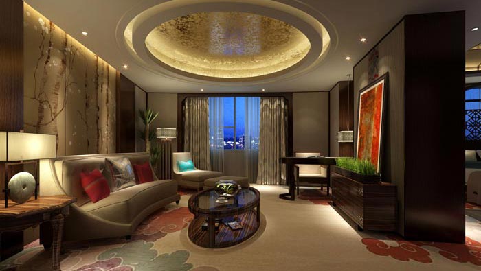 套房客廳的設(shè)計(jì):在顧客勞累了一天之后,最需要的就是擁有一個(gè)自己的空間,當(dāng)客戶進(jìn)入客廳之后,首先感受到的就是家庭的溫暖,在此處顧客可以坐在沙發(fā)上發(fā)發(fā)呆,好好的休息一下,在設(shè)計(jì)師看來什么都不想、什么都不做,是商務(wù)人士恢復(fù)的最好途徑,同時(shí)顧客也可以在這里俯視城市的美景,讓自己勞累的身心得到釋放。